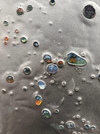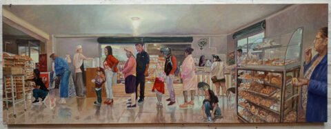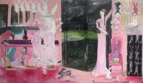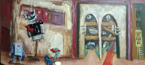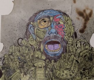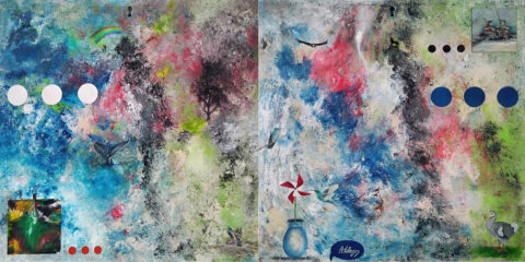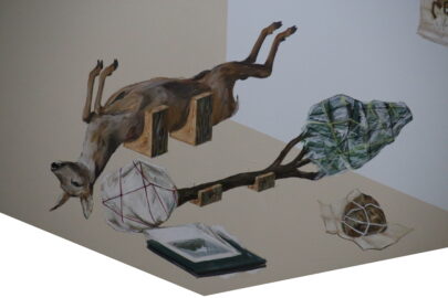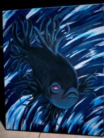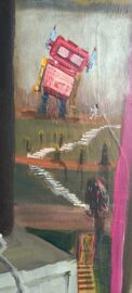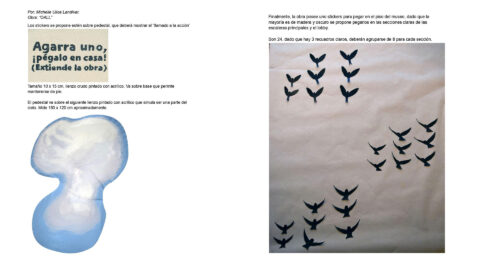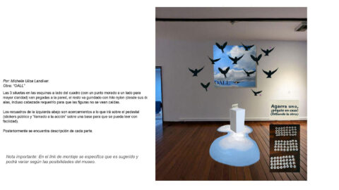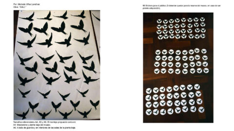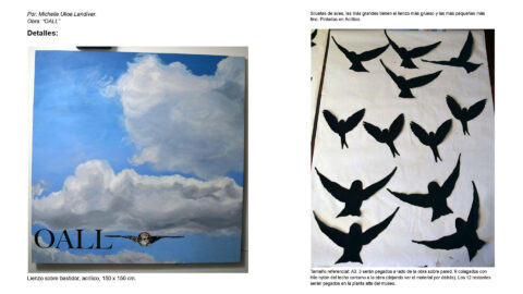 Mi propuesta busca, citando al concepto y las bases de este salón: “escrutar lo pictórico hacia una abertura incansable”, “indagar en los caminos posibles de la pintura” y generar una “noción de lo contemporáneo como estable y disperso”. Así indago los límites de las ideas, los sueños, la tecnología y la inteligencia artificial, también las no restricciones en esta edición del Salón (como medidas máximas para las obras y las inmediaciones del Museo Municipal para su exhibición). Por esto, mi obra se expande por el museo y fuera de este al facilitar a los asistentes stickers pintados con la invitación de pegarlos en sus casas.
