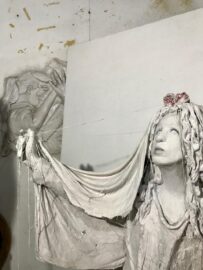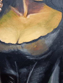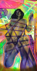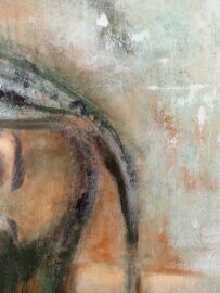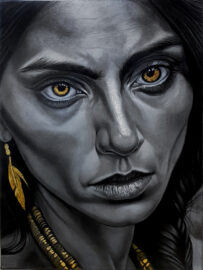 IA (Identidad Ancestral) se erige como un acto de recuperación visual de lo que ha sido relegado, olvidado o silenciado por las estructuras hegemónicas del relato histórico. En una época saturada de imágenes tecnológicas y discursos sobre inteligencia artificial, la obra subvierte el acrónimo "IA" para reconectarlo con las raíces profundas de la identidad humana. Desde una mirada ancestral que interpela al espectador con fuerza y solemnidad, esta obra plantea una revisión de los arquetipos femeninos vinculados a lo ancestral, espiritual y simbólico, recuperando la memoria cultural frente al avance deshumanizante de la tecnología donde la identidad se confunde con lo virtual.