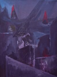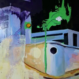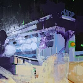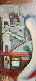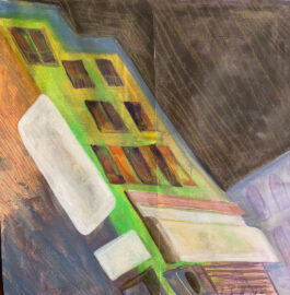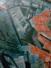 Espectro cromático patológico espacial activa la pintura como un instrumento de escaneo y revelación. El espacio representado - entornos abandonados - es abordado desde una óptica clínica, donde la imagen se construye mediante capas sobrepuestas que remiten a procesos de diagnóstico visual. Las áreas intervenidas aluden al análisis de una resonancia magnética, generando una tensión entre lo técnico y lo pictórico. La forma arquitectónica no permanece intacta: es diseccionada por el color, expuesta en su vulnerabilidad. Lo pictórico, aquí, no embellece ni repara; escarba, señala, y revela las anomalías que atraviesan lo urbano como si de un cuerpo enfermo se tratara. Esta obra interroga los espacios donde lo arquitectónico se vuelve orgánico y la pintura opera como herramienta de estudio. Al conectar estas ruinas con la fragilidad del cuerpo humano, propongo un diálogo que visibiliza cómo ambos son testigos y protagonistas de los mismos procesos de desgaste y transformación. Esta mirada me lleva a reflexionar sobre la condición perecedera que compartimos con el entorno que habitamos y sobre cómo el arte puede convertirse en una forma de leer, reinterpretar y resignificar esas huellas.