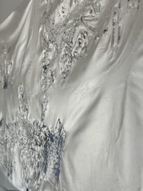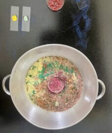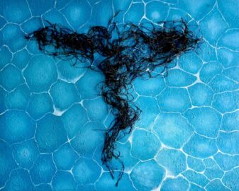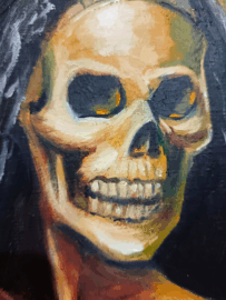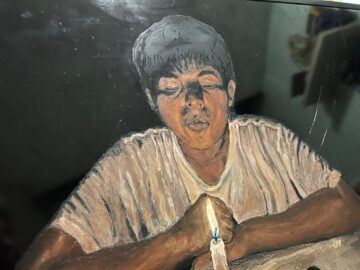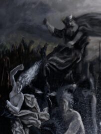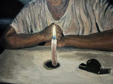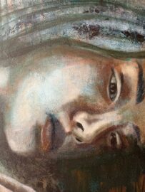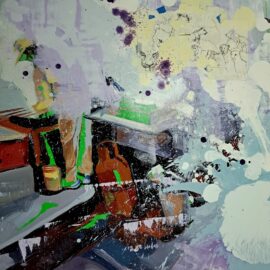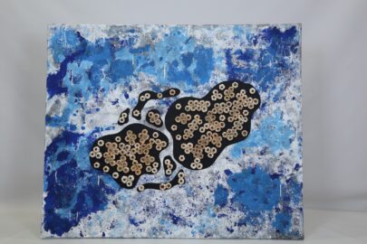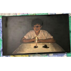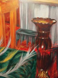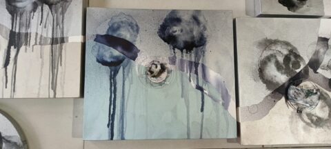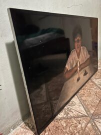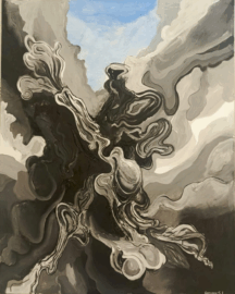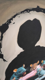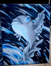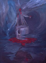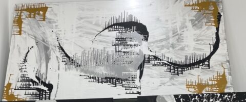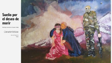 El “Último suspiro” es una pieza pictórica de denuncia, memoria y duelo, a través del gesto expresivo y el lenguaje del dripping, esta obra representa la descomposición social y el dolor colectivo que atraviesa el país por las constantes muertes inocentes. Su fondo negro no es un vacío estético, sino un luto explícito, permanente en la que muchas vidas se han apagado sin justicia. Las manchas blancas y grises que gotean y estallan sobre la superficie no son formas abstractas al azar, son restos de vidas, rastros de almas que han sido interrumpidas, la verticalidad de algunos chorros son cuerpos cayendo, lágrimas que no cesan y disparos que atraviesan la atmósfera. Las trayectorias curvas y caótica son rutas desviadas del caos por la violencia. La textura en las gotas busca que el espectador no solo vea, sino que sienta y encuentre un relieve simbólico, la tragedia, la huella imborrable del dolor. El olor floral, es esencial, puesto que el aroma no embellece la tragedia; más bien, la contextualiza, puesto que alude a las flores depositadas en los cementerios, a los homenajes silenciosos que muchas veces reemplazan la justicia, el olor suave es un contraste de liberado qué simboliza paz y despedida frente al caos visual del crimen. La obra no pretende ser un objeto decorativo, sino una superficie de memoria viva, es ahí donde la obra encuentra su equilibrio: entre la violencia y el descanso, entre el grito y el último suspiro, siendo un reclamo al presente, una memoria al futuro, una ofrenda para quienes partieron sin haber tenido siquiera la posibilidad de despedirse.