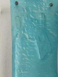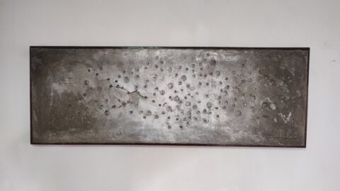 Optar por la oxidación del metal como medio pictórico es una decisión conceptual. El óxido actúa como agente de tiempo, memoria y transformación. La imagen no se representa, se descompone lentamente, dejando rastros fantasmales. El soporte no es neutro: tiene historia, reacciona, se mancha, se deteriora. Esta propuesta no busca representar la memoria como algo intacto o nostálgico, sino como un terreno en disputa, donde lo que se recuerda y lo que se pierde conviven en tensión. El uso del metal oxidado permite hablar de lo pictórico desde lo matérico, haciendo visible el paso del tiempo como parte de la imagen.