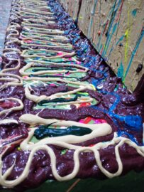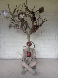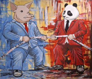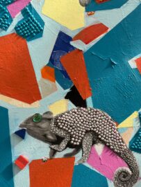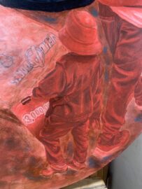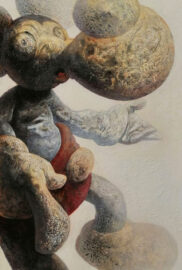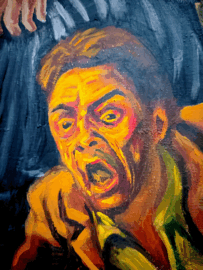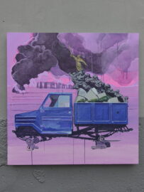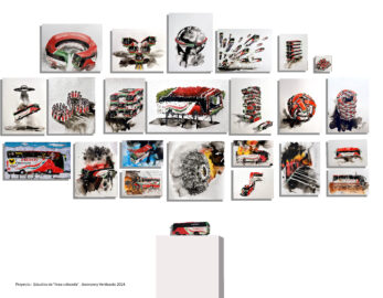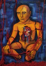 Se plantea una paradoja entre lo Cruel y lo Lúdico, involucrando como pigmento a los elementos derivados de petróleo (juguetes plásticos), que son sometidos a un proceso de calor controlado. Esta obra propone un equilibrio entre las artes plásticas tradicionales vs. las artes contemporáneas que critica el estilo de vida actual de la sociedad y más aun, a las políticas de estado con relación a la explotación petrolera y la economía global que gira en torno a este recurso natural