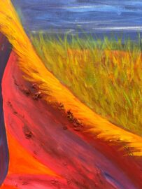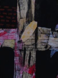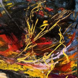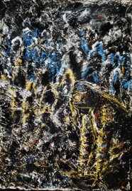 Dentro de la historia del Ecuador hallamos, como uno de sus emblemas más representativos, a sus símbolos patrios, en los cuales predominan los colores: amarillo, azul y rojo. Tonalidades que, desde el tratado De Pictura de Leon Battista Alberti, son considerados los pigmentos primarios. Sin embargo, en el contexto de la formación de la república ecuatoriana, estos colores adquirieron un valor simbólico: el amarillo como representación de la fertilidad de la tierra, el azul como evocación del cielo y los océanos, y el rojo como homenaje a la sangre derramada por los mártires de la independencia. Hoy, esas mismas franjas de color ondean, pero su carga ha mutado. El rojo, en particular, parece haber ganado protagonismo, no por el heroísmo de antaño, sino por el dolor contemporáneo: violencia, corrupción, impunidad. En un país donde el suelo fértil se ha vuelto estéril y el horizonte marino se ha nublado, el símbolo patrio se convierte en espejo fragmentado de su propia contradicción. Esta obra se apropia de esos tres colores no para reafirmar una idea glorificada de nación, sino para cuestionarla. Reinterpreta sus códigos a través de una estética que transita entre lo abstracto y lo figurativo, empleando capas, texturas y gestos plásticos que evocan una geografía rota, donde la bandera ya no unifica, sino que revela sus grietas. Porque al referirnos a “la patria” no hablamos sólo de territorio, sino de cultura, memoria y presente. Y ese presente es incierto, tenso, lleno de zozobra. El arte no puede ni pretende encapsular a una nación, pero puede mirar de frente su herida. La patria, entonces, ya no es un lienzo limpio. Es un cuerpo tatuado de cicatrices. Esta obra no busca cantar el himno, sino escuchar lo que sus estrofas ya no pueden ocultar.