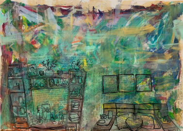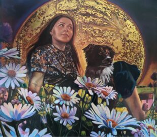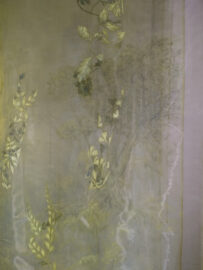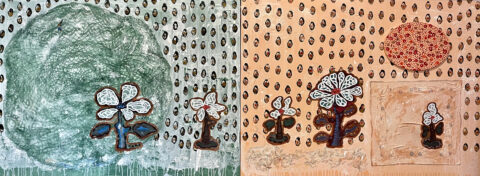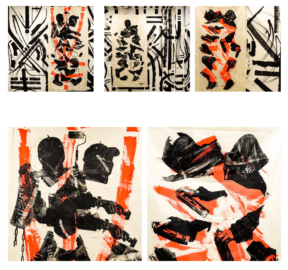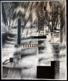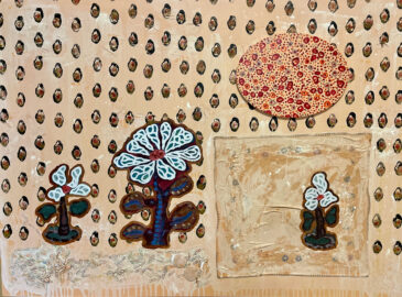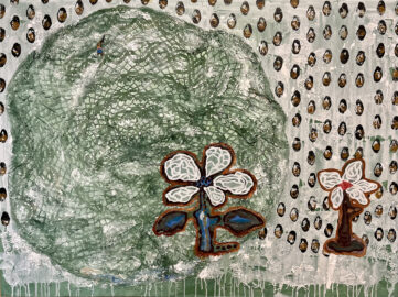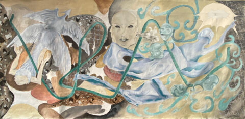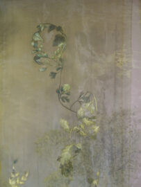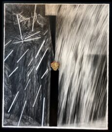 Mixta (Acrílico, lápiz carbón y papel de oro sobre lienzo)