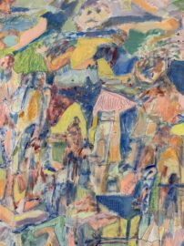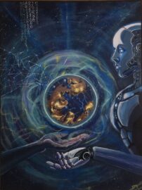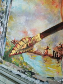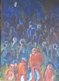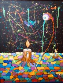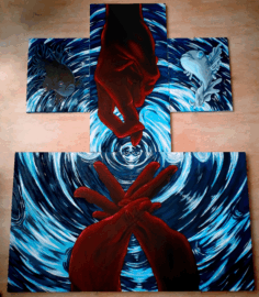 La presente obra encuentra su punto de partida en el estilo abstracto surrealista como una manifestación ensoñadora del ser humano que a través de la fe y sus sentimientos religiosos eleva una oración de paz para el mundo, con anhelos de esperanza, para que la paz ilumine nuestros corazones en este universo lleno de conflictos, guerras y violencia. Esta plegaria infinita se multiplica y recorre los dolidos corazones y apenados rostros de familiares y amigos ecuatorianos, que con pánico y temor no se explican la procedencia de la cruenta ola de violencia, desatada en el país y en otras regiones del mundo. ¡Motivos suficientes para sumarme a esta plegaria y a través de mi obra impregnar el sentimiento en el lienzo, elevando una oración para que se establezca la paz en el mundo ¡BASTA YA DE TANTA VIOLENCIA! HOY OREMOS PARA QUE REINE LA PAZ EN EL MUNDO!
