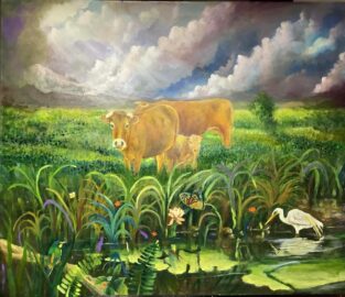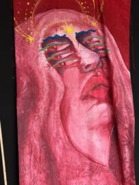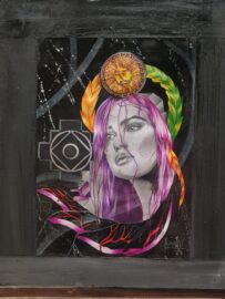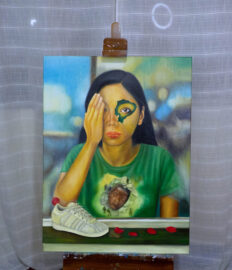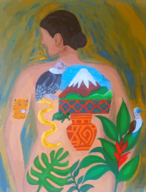 Esta serie pictórica encarna una memoria, una historia colectiva. Utilizando la totora como soporte, la obra dialoga con la cosmovisión andina, convirtiendo lo material en un acto simbólico y político. Las piezas representan mujeres indígenas fuertes y multifacéticas, rompiendo estereotipos coloniales y patriarcales al resaltar su autonomía, sabiduría ancestral y conexión con la tierra se entrelazan en imágenes que trascienden la representación pasiva, proyectando identidad y resistencia. Más allá de la contemplación, fortaleciendo el vínculo entre arte, comunidad y territorio. Estas obras no solo se observan, son actos de memoria activa, donde lo pictórico se convierte en gesto compartido, ejercicio crítico de reparación y transformación.
