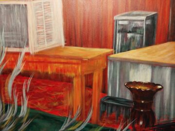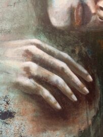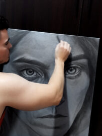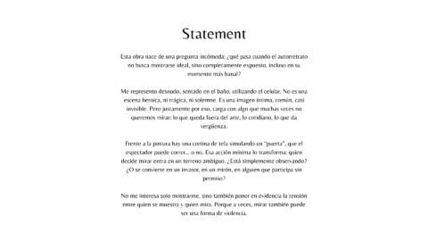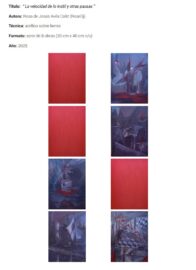 Mi obra Prompt invita a un debate profundo sobre los límites y posibilidades del ser humano frente a la inteligencia artificial, desafiando la noción convencional de lo que consideramos creación artística. Al presentar imágenes que nacen del trazo humano pero que coexisten con la intervención de la IA, quiero abrir una conversación sobre la esencia del arte en una era donde las máquinas no solo asisten, sino que también potencian nuestra poética. Más allá de buscar respuestas, mi obra se erige como un espacio para formular nuevas preguntas: ¿Dónde termina la mano del artista y dónde empieza la máquina? Cada pieza está concebida como un ejercicio que no rechaza la tecnología, pero sí la confronta desde una postura crítica. El acto de pintar a mano es un manifiesto contra la dependencia absoluta de la IA, pero también una reflexión sobre su coexistencia con lo humano. El arte, en su pureza manual, dialoga con lo que la inteligencia artificial sugiere, creando un juego de tensiones que desafía al espectador a reconsiderar su papel como testigo y participante de este nuevo entorno híbrido. Al enfrentarse a tres versiones de la misma imagen desde diferentes encuadres, el observador es llevado a cuestionar la percepción y la realidad de lo que observa. ¿Es el arte una cuestión de técnica o de intención? ¿El uso de la IA despersonaliza la creación o simplemente expande los límites de lo posible? Estas preguntas subyacen en la experiencia visual y conceptual de la obra, provocando que la audiencia se sitúe en una posición de duda y cuestionamiento activo. El punto de partida fue un boceto hecho a mano, que luego transformé utilizando Openart, una página que genera imágenes mediante IA. Elegí tres versiones que resonaban con mis preocupaciones estéticas y conceptuales. A partir de allí, comencé un proceso pictórico manual donde no solo reinterpreté lo generado por la máquina, sino que lo rehumanicé. Uno de los descubrimientos más valiosos fue entender que la IA no anula al artista, sino que puede ser una herramienta de expansión poética si se la usa con sentido crítico. Pintar cada imagen fue como volver a reclamar el gesto humano dentro de lo digital. Como estrategia, entendí que un buen boceto es el mapa fundamental del proyecto, y que el color tiene un rol narrativo profundo: cada paleta cuenta una historia distinta aunque comparta origen con otra. La obra así se vuelve un archivo de posibilidades donde la tecnología es cómplice, no antagonista. Mi obra revela un conflicto inherente entre la intuición humana y la precisión algorítmica. Lejos de ser un simple rechazo a la IA, la obra se posiciona como una reflexión crítica sobre la coexistencia de ambos mundos, donde el control del artista sobre la tecnología no solo refuerza su visión creativa, sino que también abre un espacio para que el espectador cuestione el futuro del arte en un entorno de creación híbrida.
