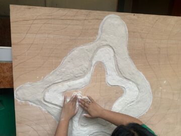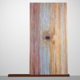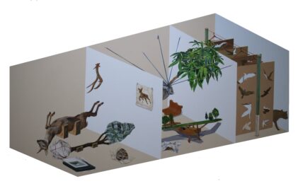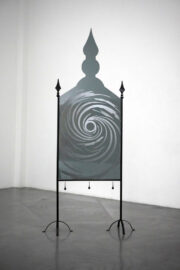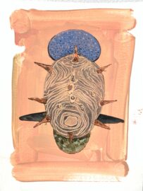 Exploro cosmogonías donde la serpiente, símbolo de lo eterno, se despliega como un hilo conductor que entrelaza relatos de origen del mundo con cosmología científica. A través de su cuerpo ondulante convergen en mi trabajo memorias míticas y un imaginario cósmo-científico: temblores de la tierra, surcos planetarios, destellos estelares, meteoritos y volcanes. En ese cruce, donde la mitología arcaica y la data astronómica se abrazan, sitúo las nociones de esta obra titulada Axis Mundis. La serpiente, en su ascenso y descenso entre lo subterráneo y lo celeste, se vuelve un axis mundi, un eje simbólico que enlaza ciencia, mito y fábula.
