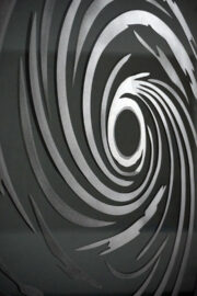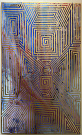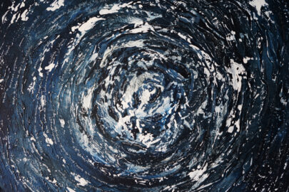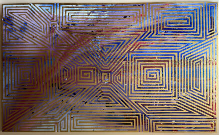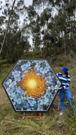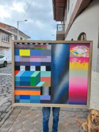 Pictóricas Atmosféricas propone una pintura como territorio en fricción, donde geometría y gesto construyen una cartografía sensible de fuerzas en transformación. Inspirada en el efecto Coriolis y los patrones climáticos desde el Ecuador, la obra articula espirales como símbolos ancestrales y dinámicas visuales que evocan flujos atmosféricos, desvíos, memoria y convergencia. Desde lo pictórico, emerge una experiencia visual inestable y expandida, que tensa lo controlado y lo orgánico, lo racional y lo caótico. La pieza sugiere un campo de energía viva, en el que la pintura ya no representa, sino que actúa, resuena y respira con su propio clima.