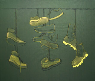 Esta obra utiliza los zapatos como símbolo de la emocionalidad femenina, proponiendo una lectura crítica de cómo la sociedad exige coherencia, contención y “orden” a las mujeres incluso en sus formas de sentir. A través de una narrativa visual que transforma el calzado en metáfora, la obra explora la vergüenza, la culpa y la negación de una misma que nacen de habitar la emocionalidad con libertad. La pieza se sostiene en una experiencia íntima, que se despliega hacia lo colectivo, apuntando a la necesidad de reapropiarnos de nuestras emociones sin pedir disculpas por ellas.