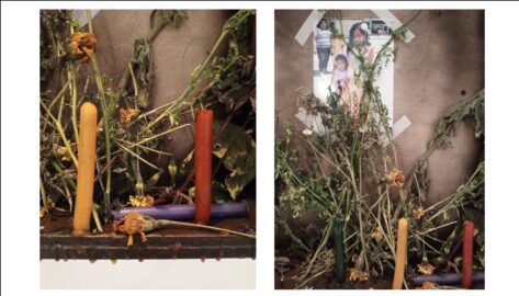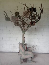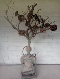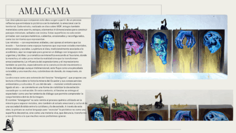 FICHA TÉCNICA Autor: Wilson José Guamán Correa Título: “José Guamán” Técnicas: acrílico, oleo, tierra, madera, bastón de madera Dimensión: 75 cm x 120 cm totalidad Año de ejecución: junio 2025 Descripción del proyecto Este proceso artístico surge del silencio, del dolor y la ausencia de perder a un ser amado, memorias que recreo en un paisaje vivencial que reflexiona y concientiza la enfermedad y el dolor que por años atravesó mi padre dando una sinrazón a la familia que se desgarro en la angustia, dolor impotencia de ver que la ley de la vida es volver a ser tierra, incinerando ciclos de vida que dura años en crecer y segundos en terminar. Así es el vals de la vida. El desdoblamiento de la conciencia y la experiencia vivencial, es mi grito de desgarro. Todos estos hilos conductores consolidan la obra y el recurso expresivo como la tierra, las plantas geminando y el bastón y los hongos que renacen un nuevo paisaje que da vida a mi enunciado que somos tierra y que nos estamos destruyendo. Ejercicios de sanación del cuerpo y la mente que reclaman vivir en armonía ante la fugacidad del tiempo y la vida. Materiales acrílico, hongos tierra madera bastón de madera Procesos de elaboración Para su elaboración se procedió a consolidad tierra de colores de la localidad y fragmentar en un canuto de carrizo, así también la apropiación de un bastón de uso habitual incrustando hongos color naranja, que crecen en la humedad que en su conjunto conforman obra José Guamán. Todo en su conjunto determina la obra que dialoga con la temática